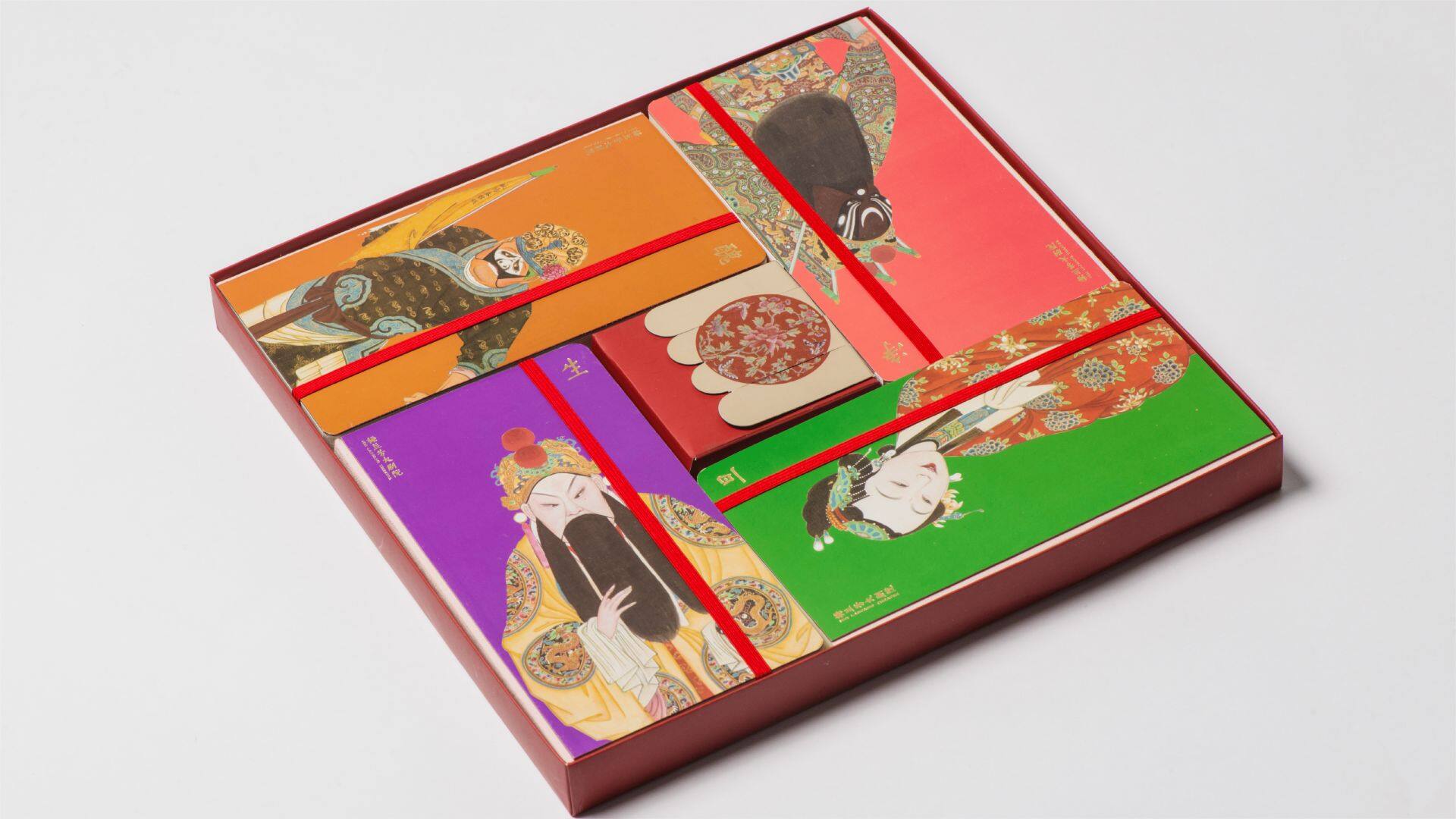 2. 以万字纹的形式逐自排开,寓意吉祥万福万寿,希望消费者能够把这份祝福带回家。分别加以各个行当的代表角色图,配以中英文介绍的行当释义,买回的不止是一套纪念品而是经典的国粹传承。其中选自京剧舞台上的道具“一桌二椅”中常见的花纹,精致生动,寓意圆圆满满,结合生动的京剧脸谱及人物形象更加准备的予以产品鲜活的生命力。