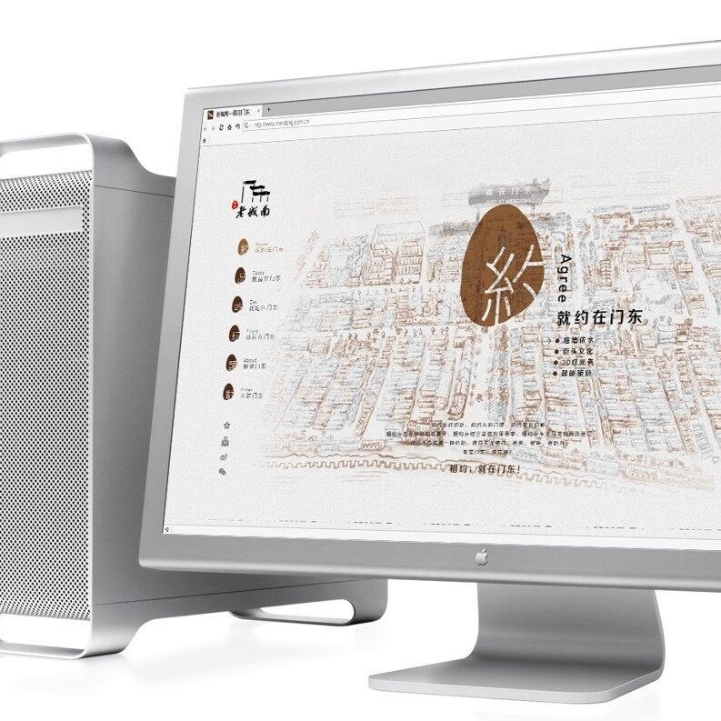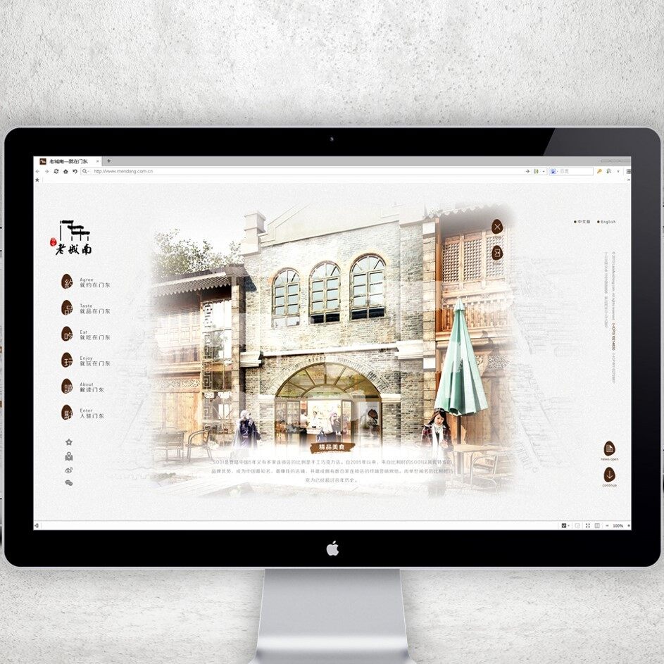 2.整体标识于厚重、灵动间完美诠释古典情怀与现代审美。刚健挺拔的现代线条与苍劲雄浑的传统笔墨相结合,交织成气韵生动的“门东”字形,勾勒出古意盎然的水墨丹青,尽染生活韵律之美。