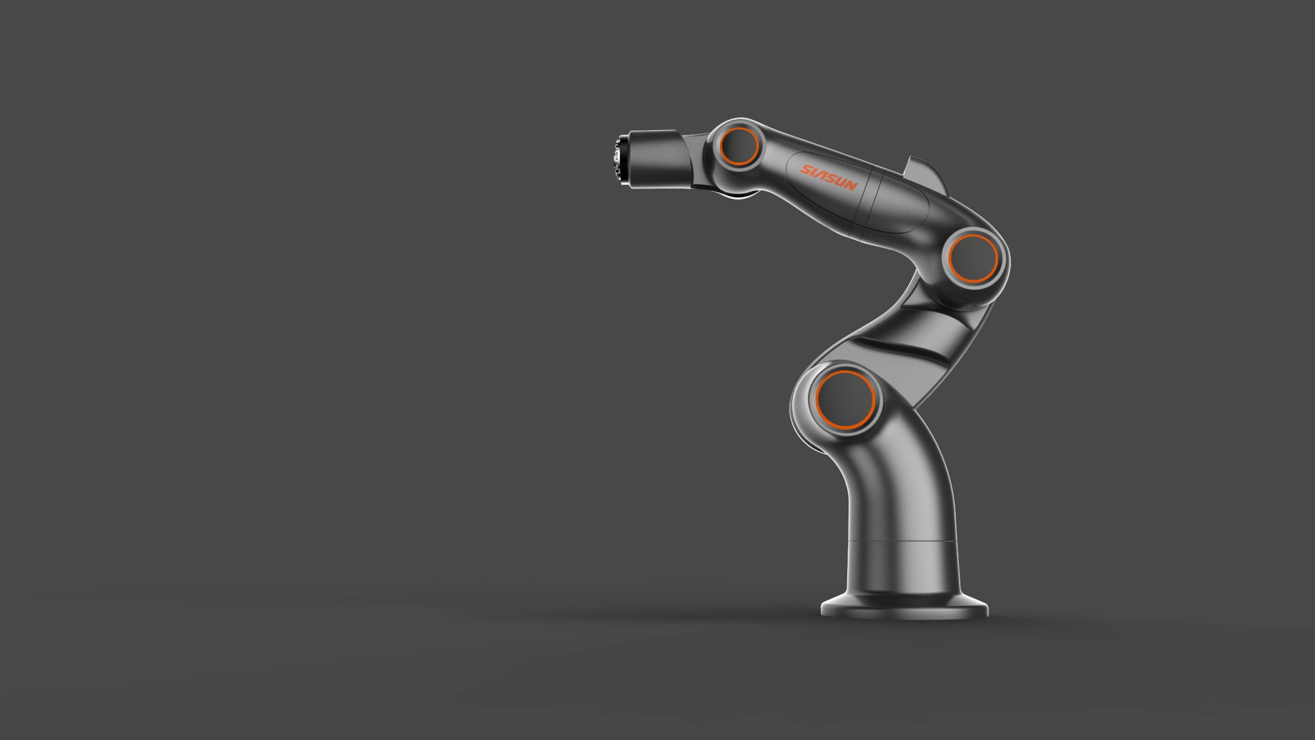 从外观风格入手,融合科技感与现代美学,采用流畅线条与简洁造型,搭配鲜明色彩点缀(如橙色、蓝色元素),打破传统机械臂的刻板印象,增强视觉吸引力。同时,强化品牌标识的融入,将 “SIASUN” 品牌元素巧妙置于机械臂关键部位,提升品牌辨识度。