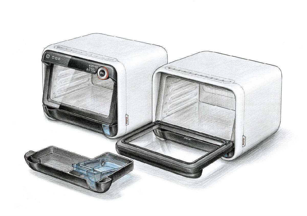 摩登7团队为海尔旗下小焙科技打造的T3嫩烤箱,便是一台可以直播的智能烤箱。