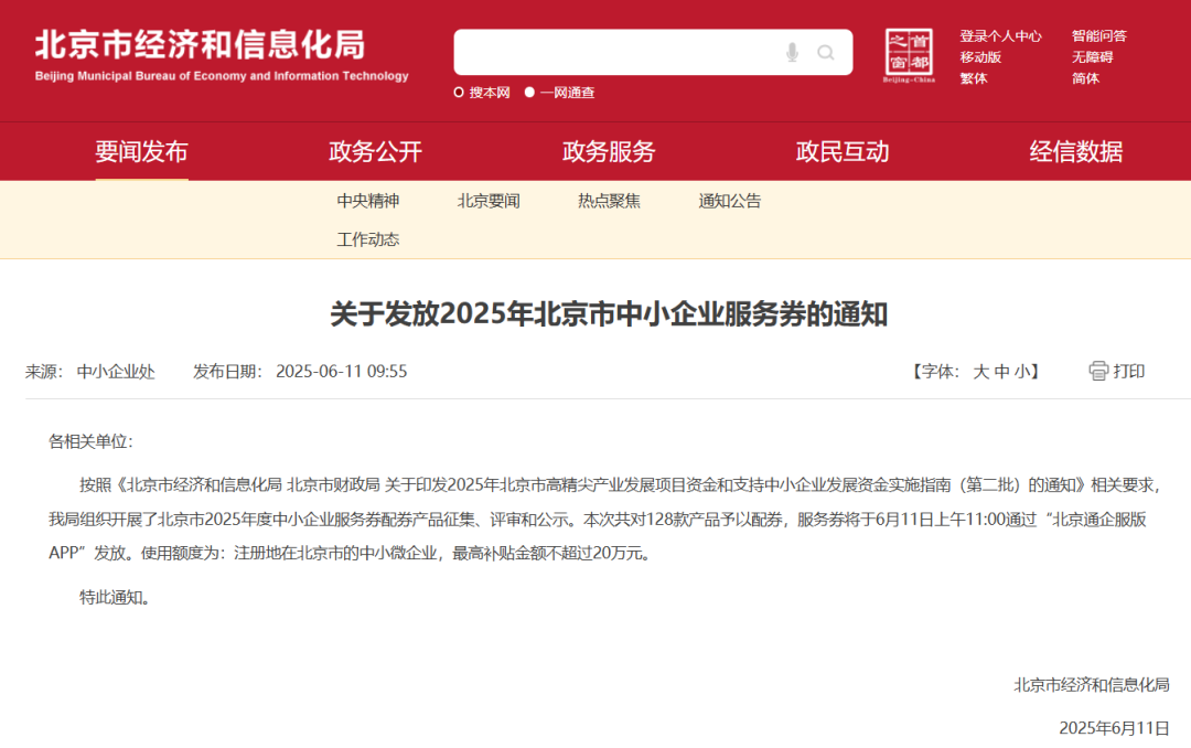 6月11日11点起,2025年中小企业服务券正式发放!专为北京注册企业定制的补贴政策已上线,摩登7咨询设计携多款服务产品参与配券,最高30%补贴直接抵扣合同金额,单企业年度最高省20万!