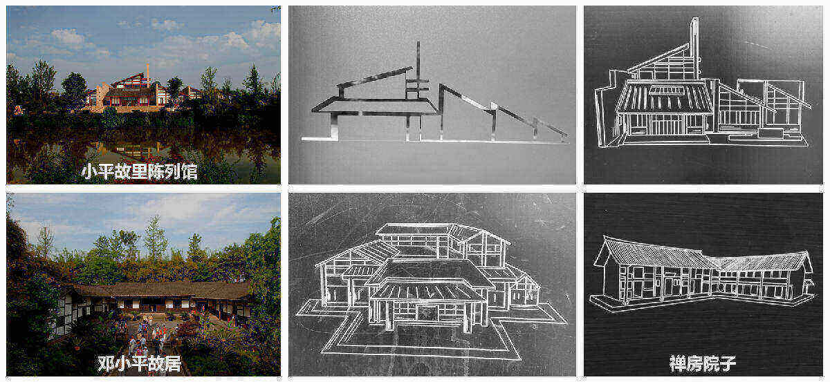 陈列馆座西向东,一字排开,青瓦坡形屋面三叠三起,最后耸立起一座丰碑,寓意着邓小平“三落三起”的传奇人生和丰功伟绩。